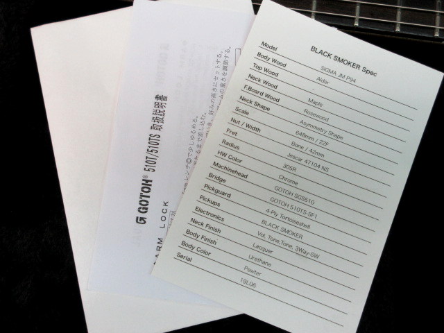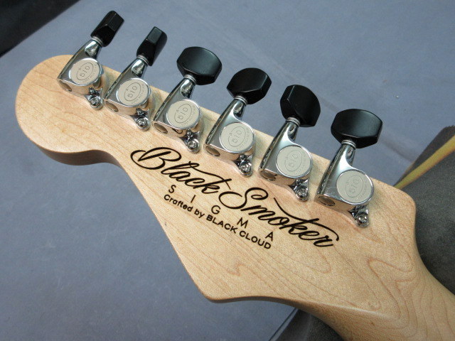 Black Smokerの特徴である非対称グリップのネックはローポジションからハイポジションまで非常に演奏性の高いモデルになります