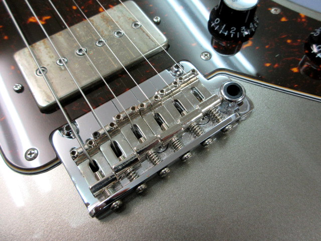 ジャズマスターの弱点とも言われる弦落ちし易いブリッジ・サドルはストラトキャスター等に採用されるシンクロタイプのトレモロ仕様になっています